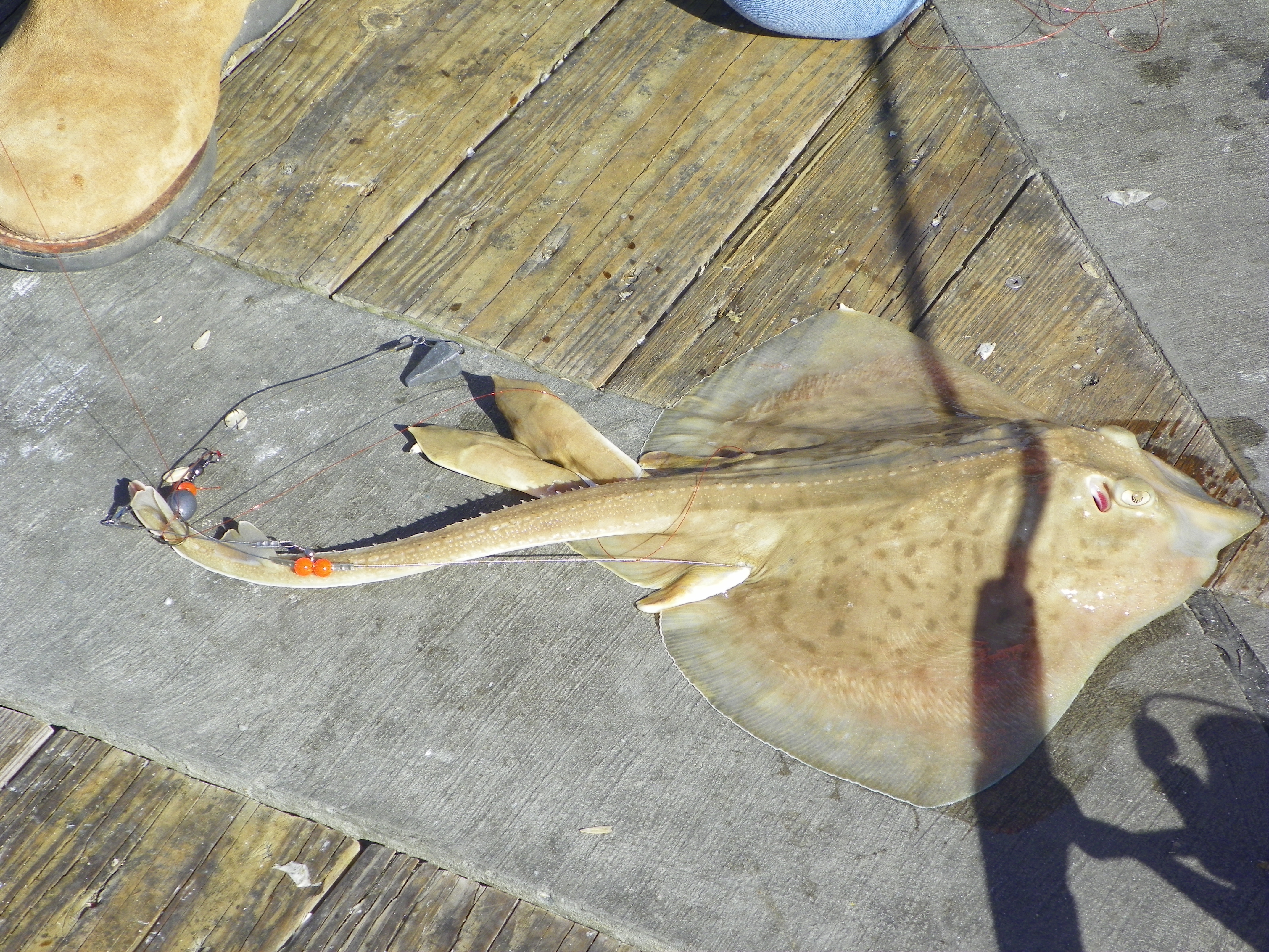 While I was gazing at the pelican…a man caught this stingray….Needless to say, he was very careful while removing his hook. Pretty cool to see one this close.