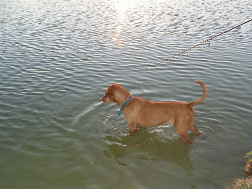 In one or two cast Billy had one. Ellie LOVES to fish too. When we fish she usually barks when she knows we have one on the line. If she is able to get into the water, she will go in after it before you even get it reeled in.