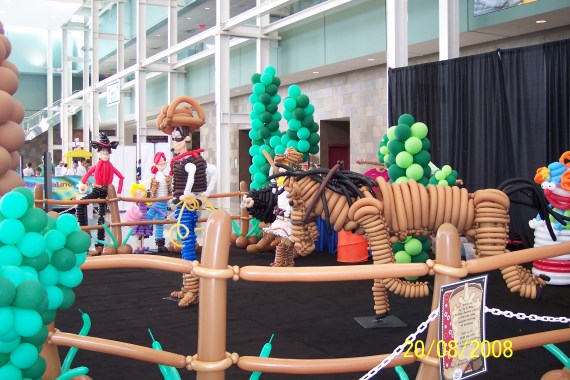 But that wasn’t all…they had a whole little ranch made out of balloons….Cowboys complete with ropes, hats and boots all of balloons. Horses, cactus and even the split rail fence was made with balloons.