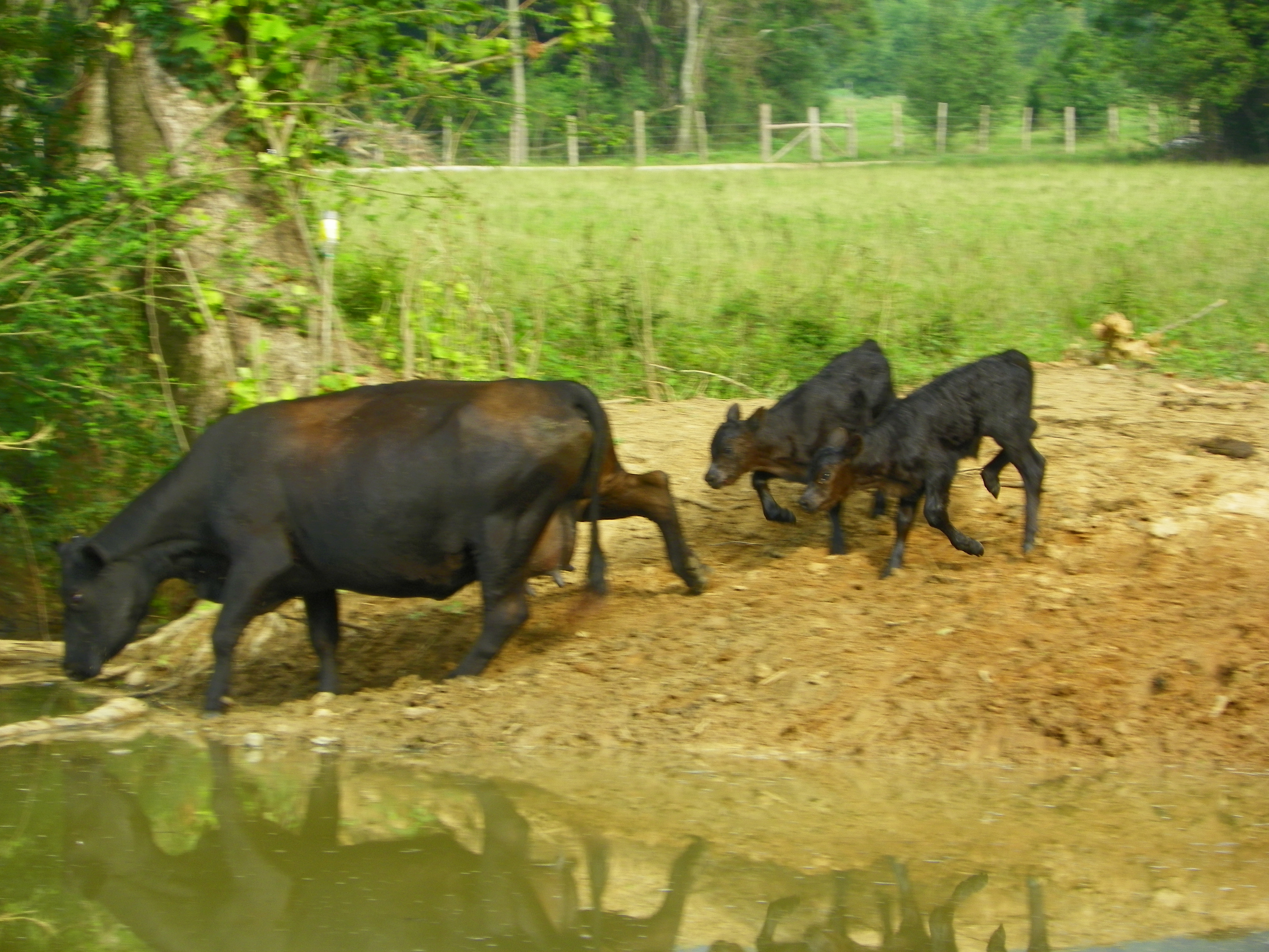 Look how sweet. This is one of our neighbors cows. She was blessed with twins over the summer. This is not the clearest picture, but one of the few that I was able to get of all three of them. Ferdinand ended up giving us two sets of twins this summer. We actually had twins when Chuck was born. However, our twin didn’t survive. Both sets were boys. All of them have good dispositions, which I am so thankful for. One of our friends said he has been around cows his whole life and has never had a set of twins.