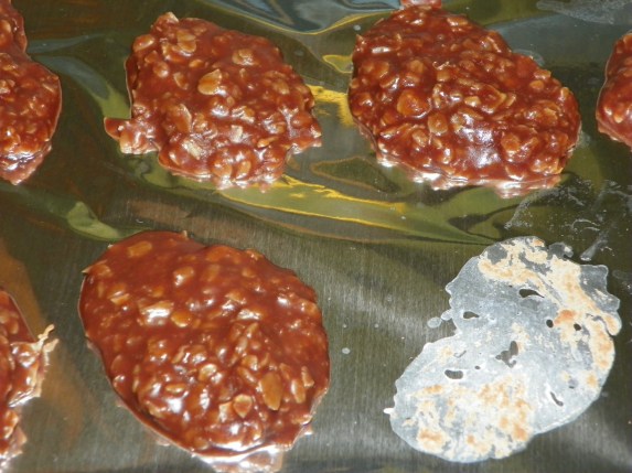 Now…Drop onto wax paper or onto foil. I drop them by the teaspoon, you can make them as big as you like.