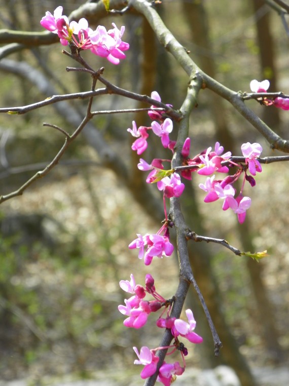 Dotted throughout the woods are patches of color on some of the trees. I am not sure what type it is. It has this beautiful pink flower on it this time of year.