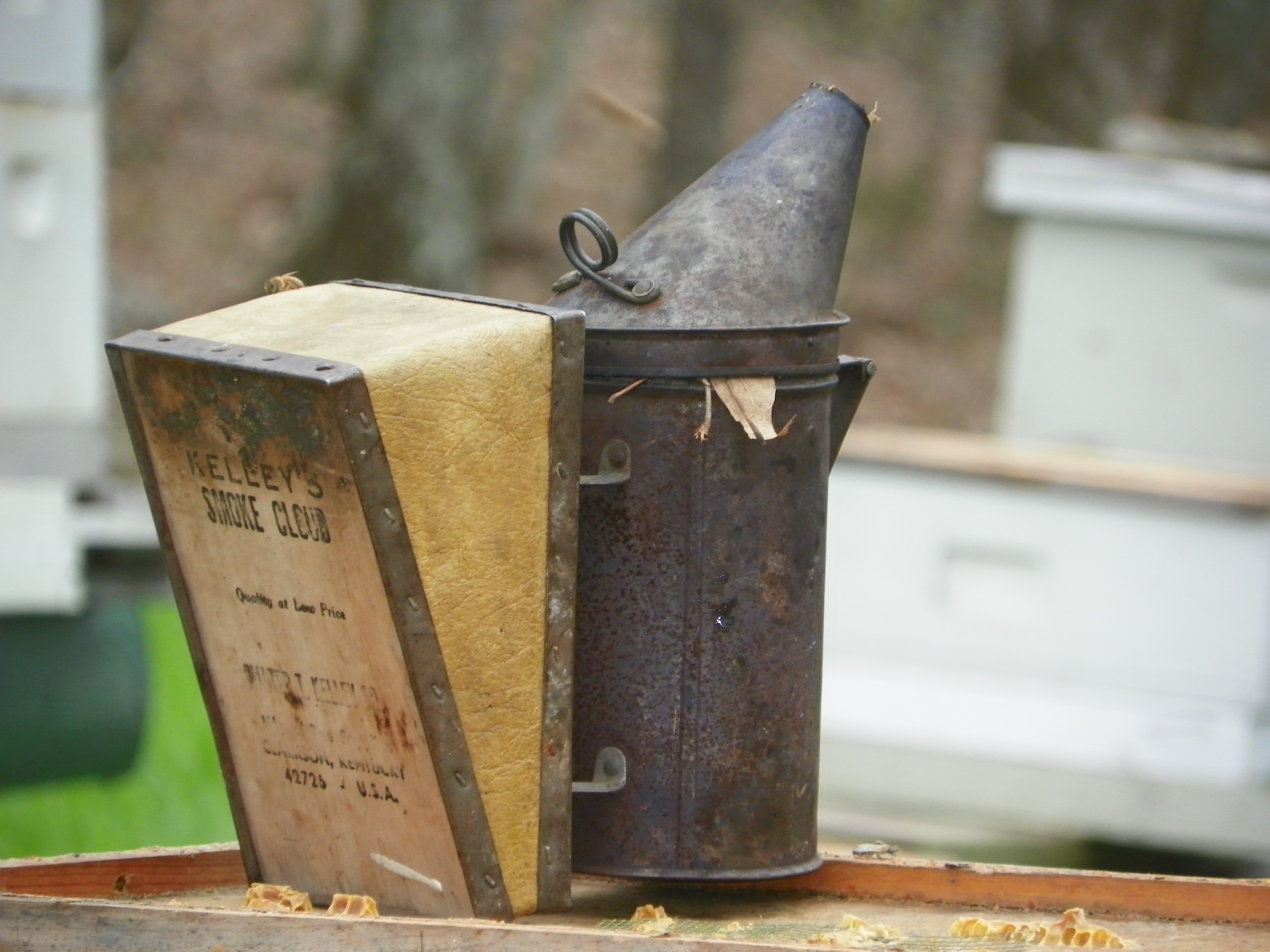 He uses this thing to smoke the bees….then he can get into the hive without getting swarmed. It makes them a little loopy I guess…or maybe I should say passive.