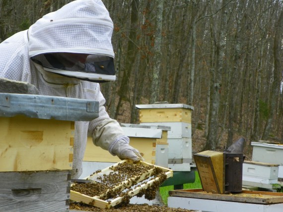 He was checking the hive very closely, looking for parasites and anything unusual.