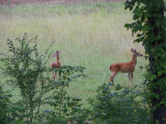 I also saw two deer crossing in front of the house. We have them on the land but it is rare that they came this close to us. I’m not sure how, but I think they know when it is hunting season and when it isn’t. Lately you can see them in the nearby fields grazing, usually four or so at a time. Several days recently I counted a dozen grazing at one time. They are beautiful in the field at dusk with the sun setting.