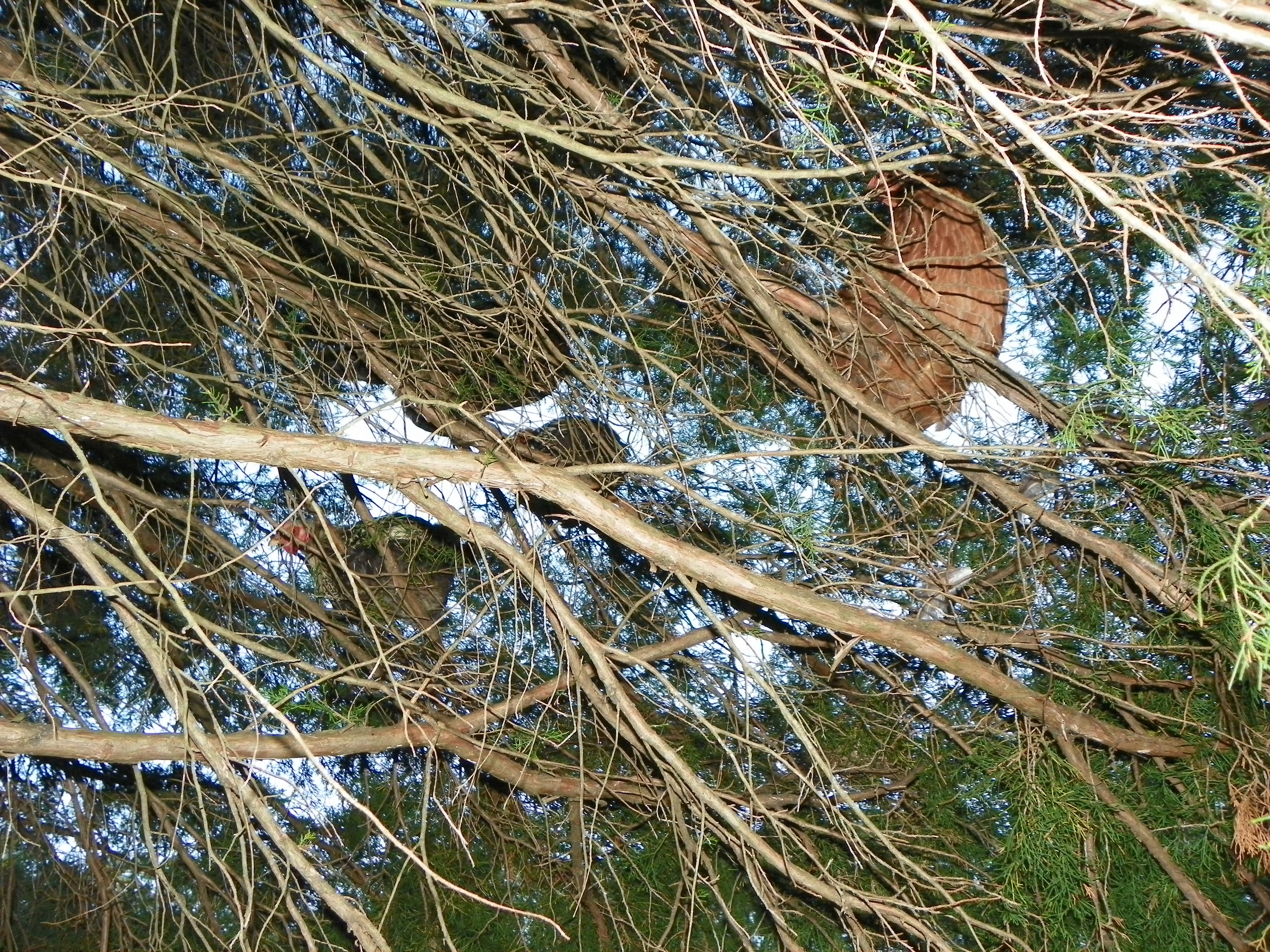 Billy and I looked around outside with our flashlight and found them. They were all roosting in a cedar tree.