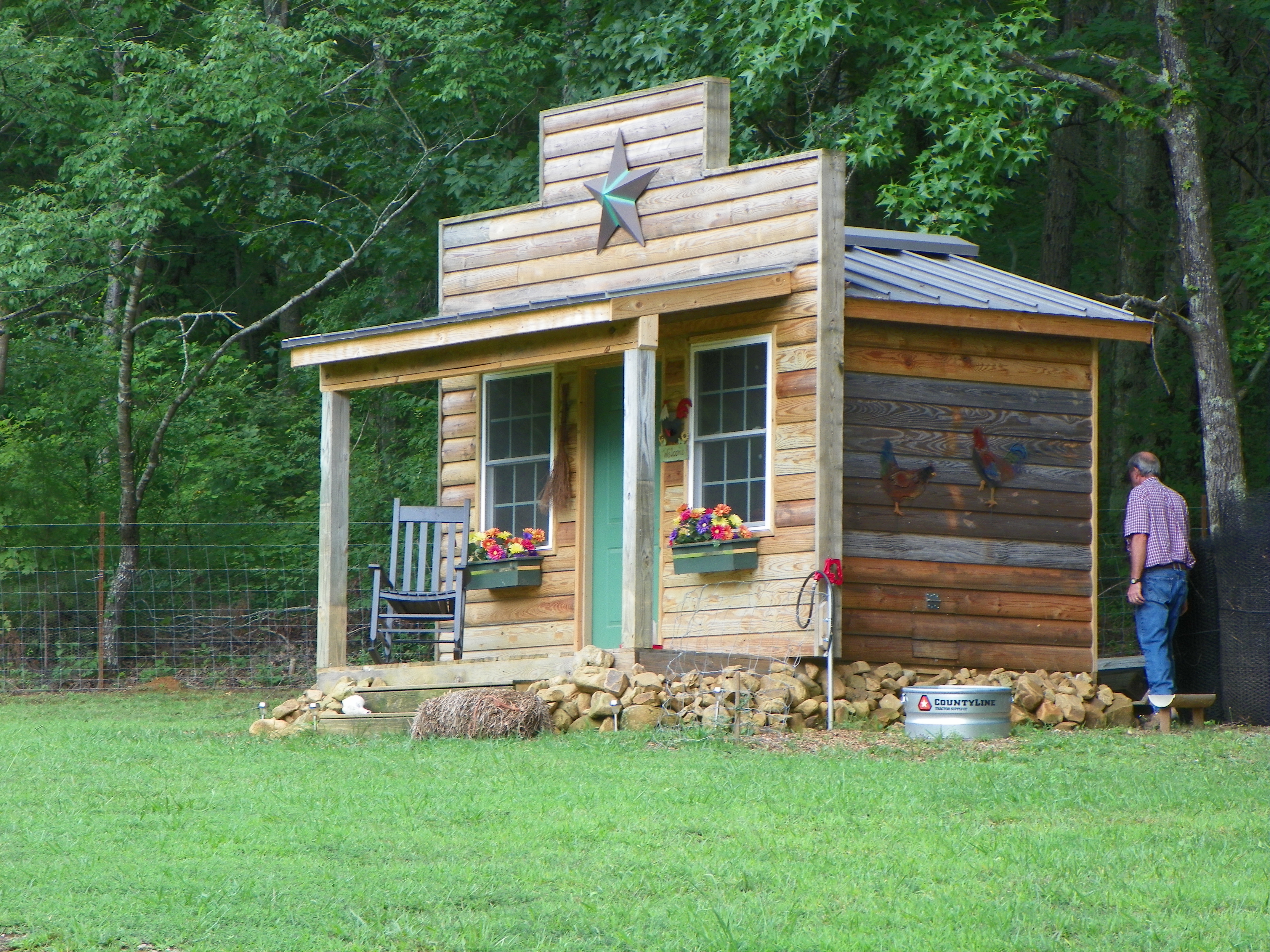 When we were about to leave Billy asked me if I wanted him to put them up for the night. I said sure….but you know that it is almost impossible to make them go inside before they want to. He said….Ah….don’t worry…I can do it. It just takes patience. I had to chuckle to myself…because …well….it was just last summer that the two of us were in the yard chasing chickens with a big fish net.