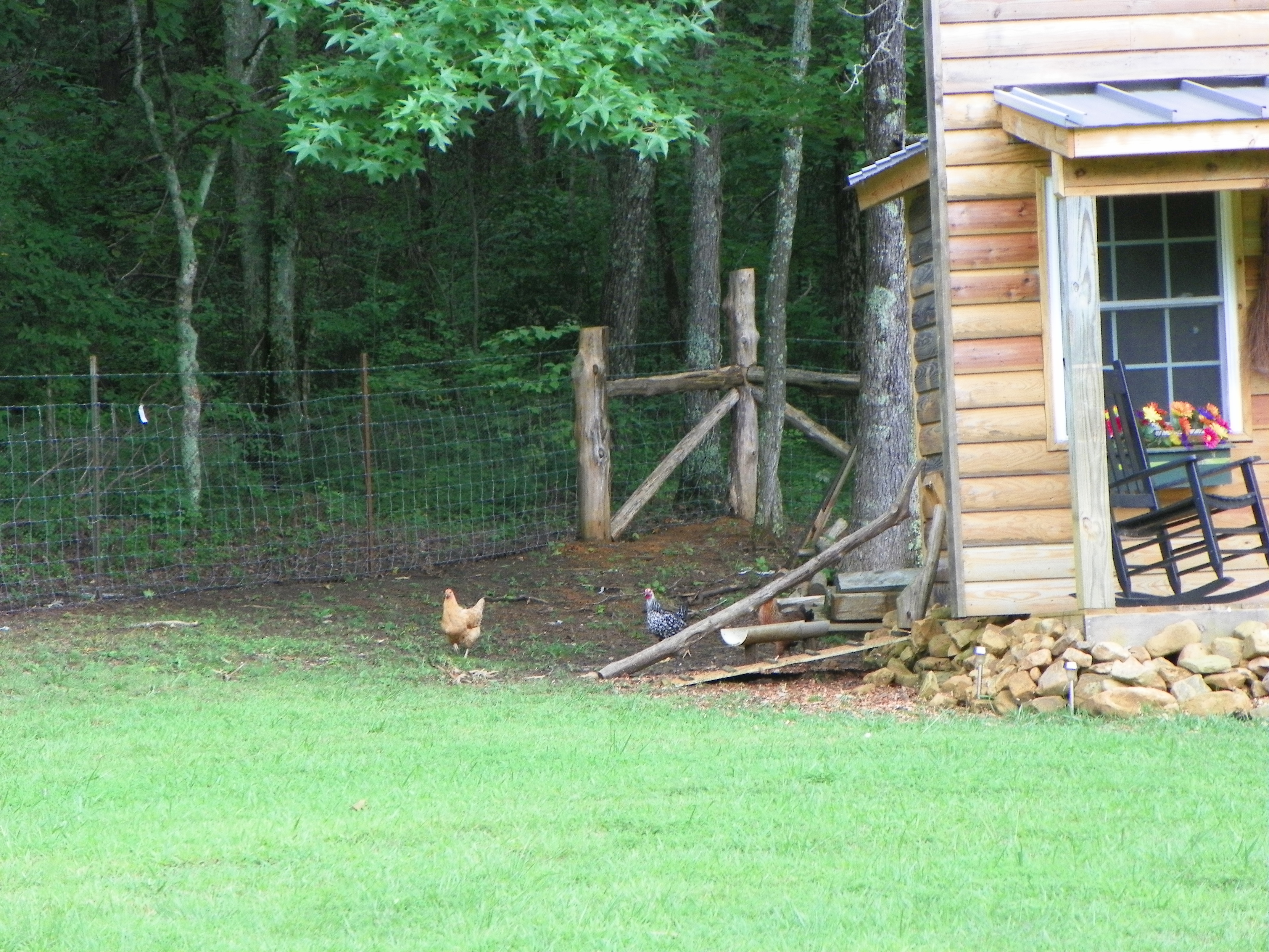 So back to the limbs…..I sheared the tree pretty good so they couldn’t reach a limb and then climb into the tree. They walked over to me and watched as I cut. Each one giving a little bock here and a little bock there….I wish I could understand chicken talk.