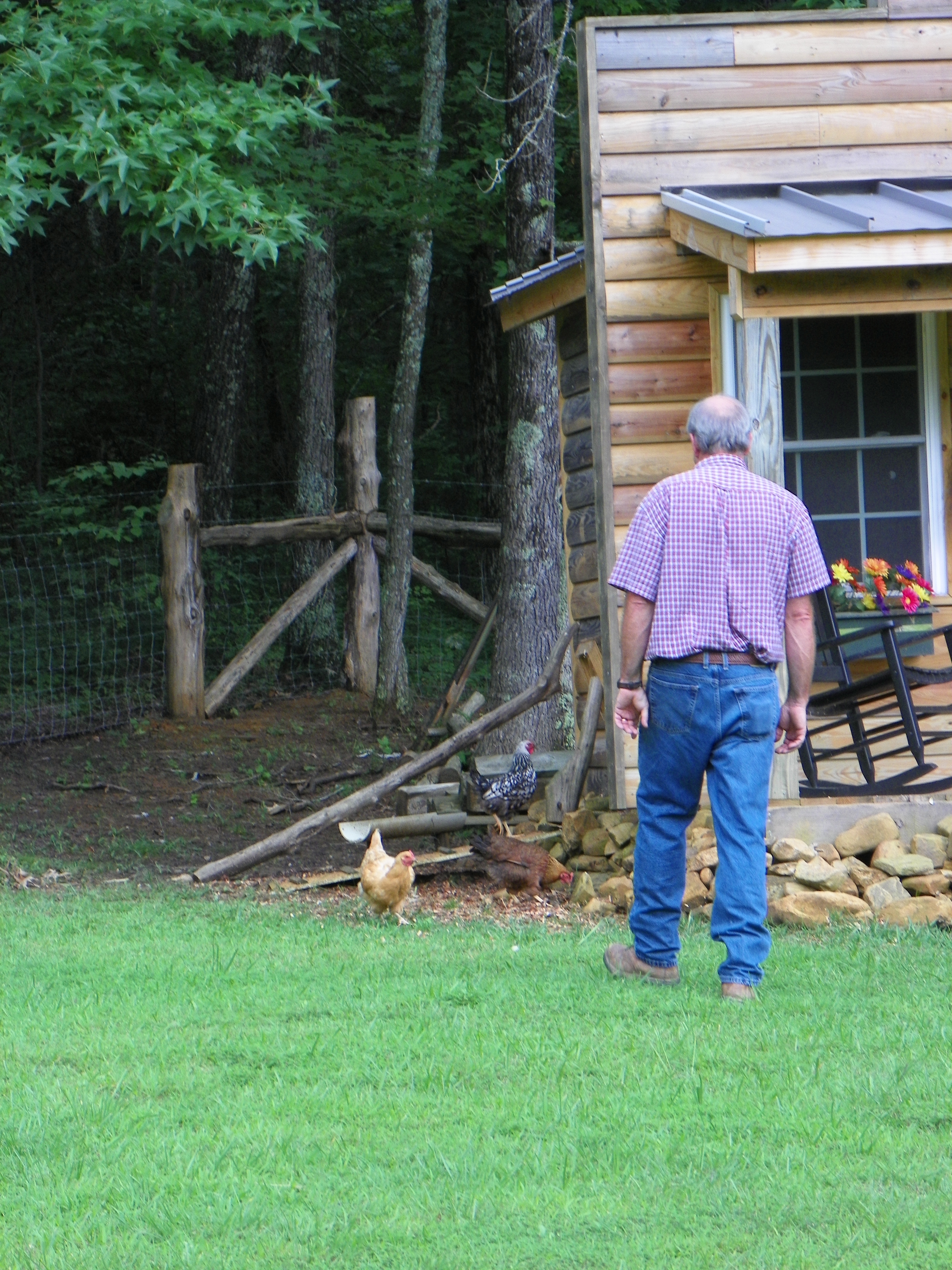 I watched carefully…..and I must say that I believe he has become the “Hen Whisperer”.