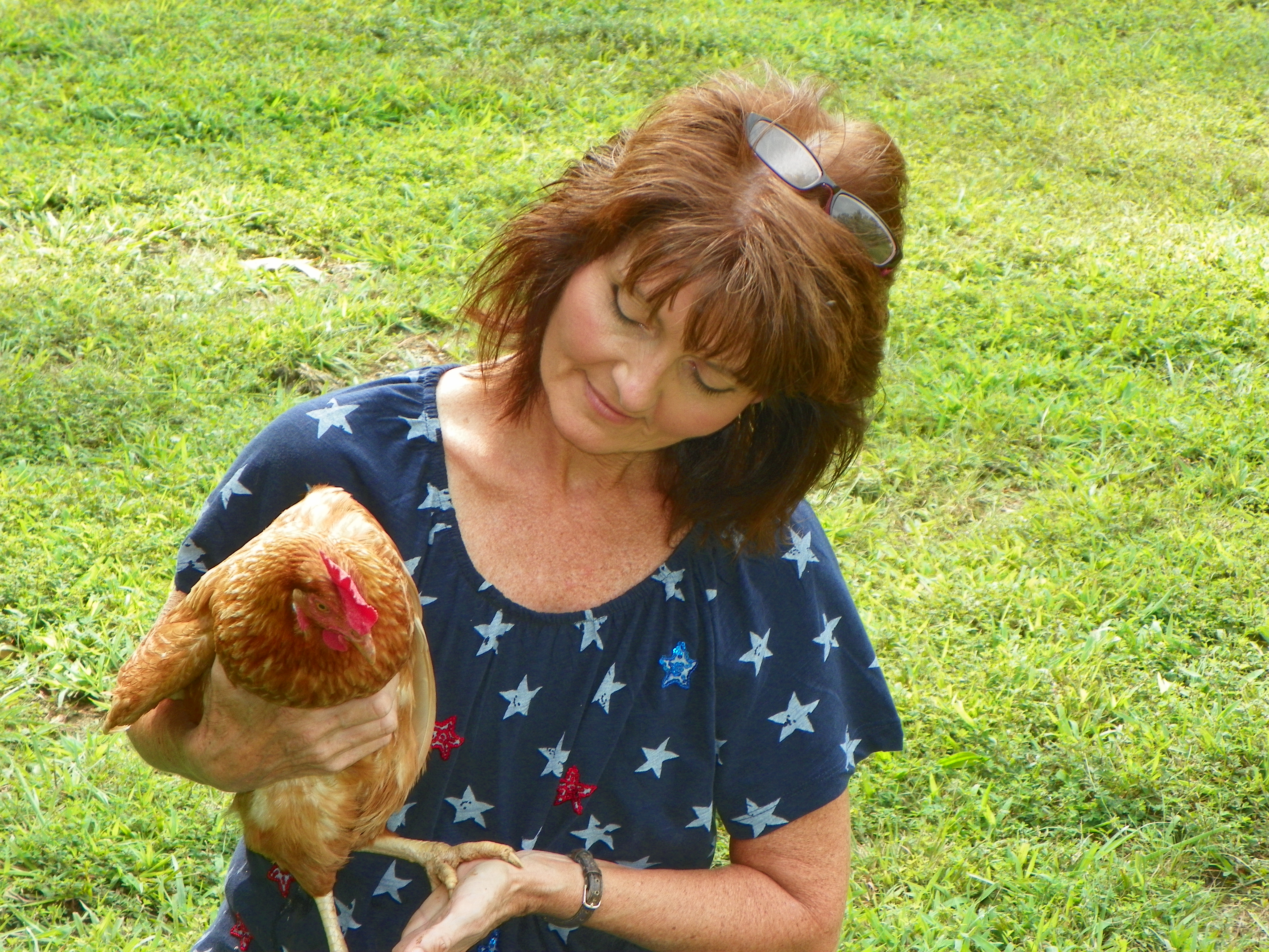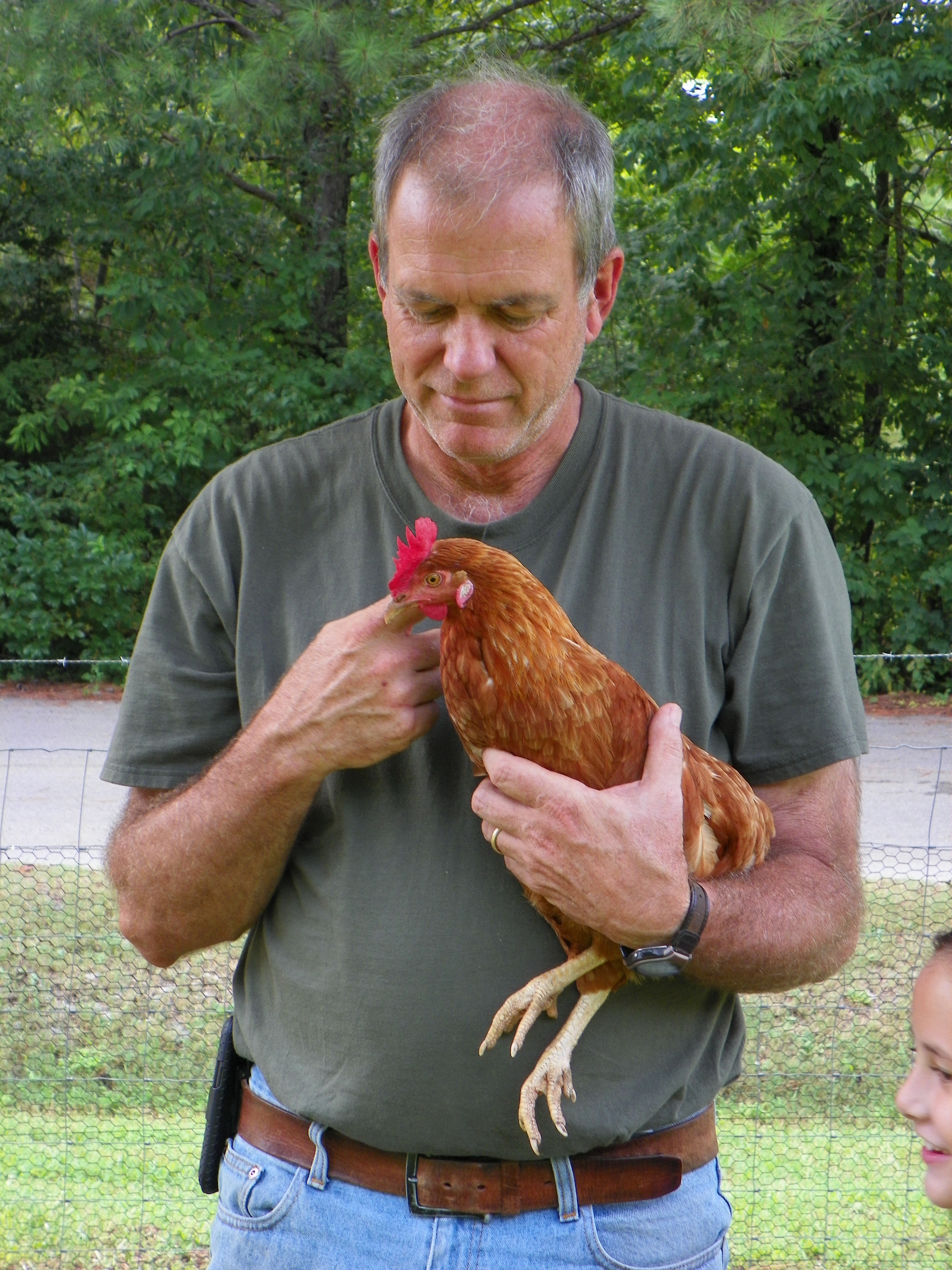 There is one hen in particular that likes for us to hold her. I know it is the same girl because she has one “ruffled” feather so I can tell her apart from the others.