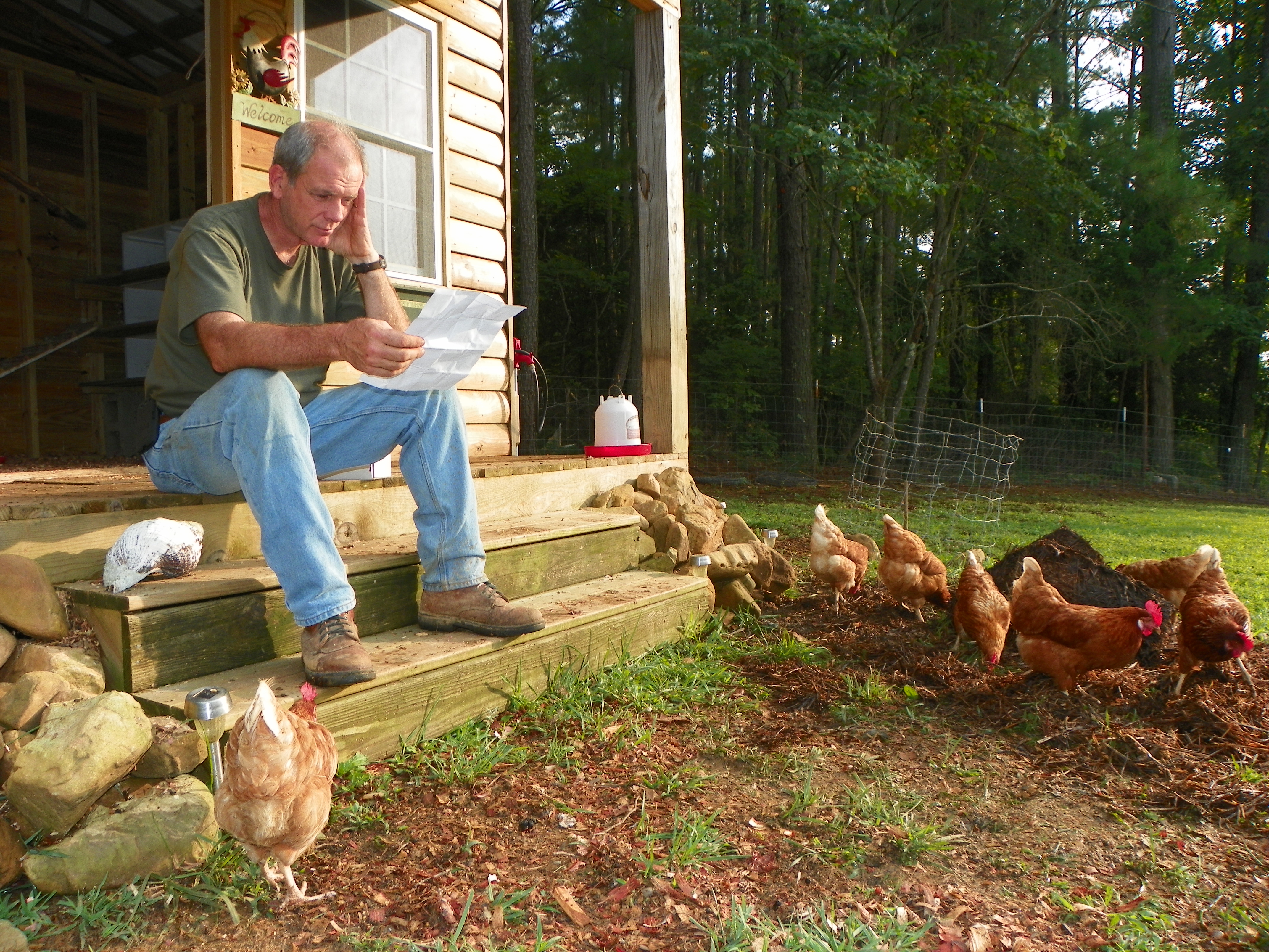 We reached the coop, the three of us gathered the hens. Billy and I were really excited to bring them to their new home.