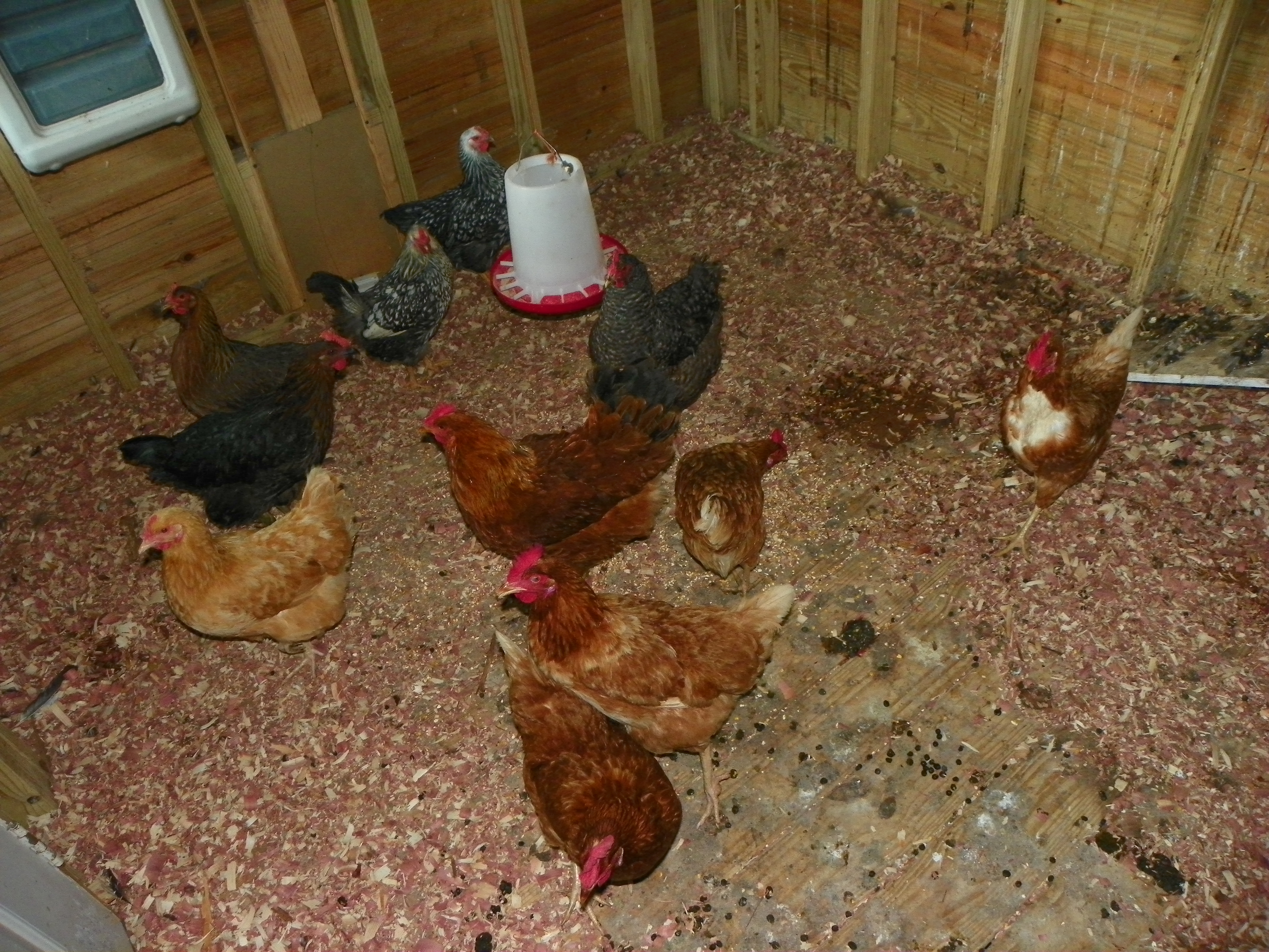 Last night we were gone…but when we arrived home…after dark…everyone was in the coop safe and secure! With the days getting shorter and daylight saving around the corner…I’m glad Billy read up on the timer stuff. I’m sure we will or HE will be tweeking it in the upcoming weeks.
