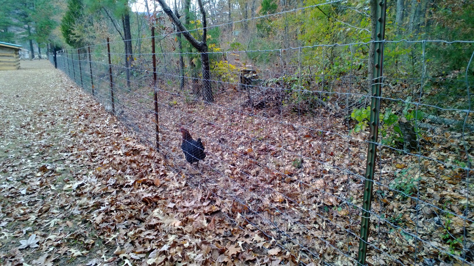 I discovered how she was getting out. She would flutter onto a cedar cross bar, that is part of the fencing, and then she was able to flutter again, gaining just enough height to be able to let herself over.