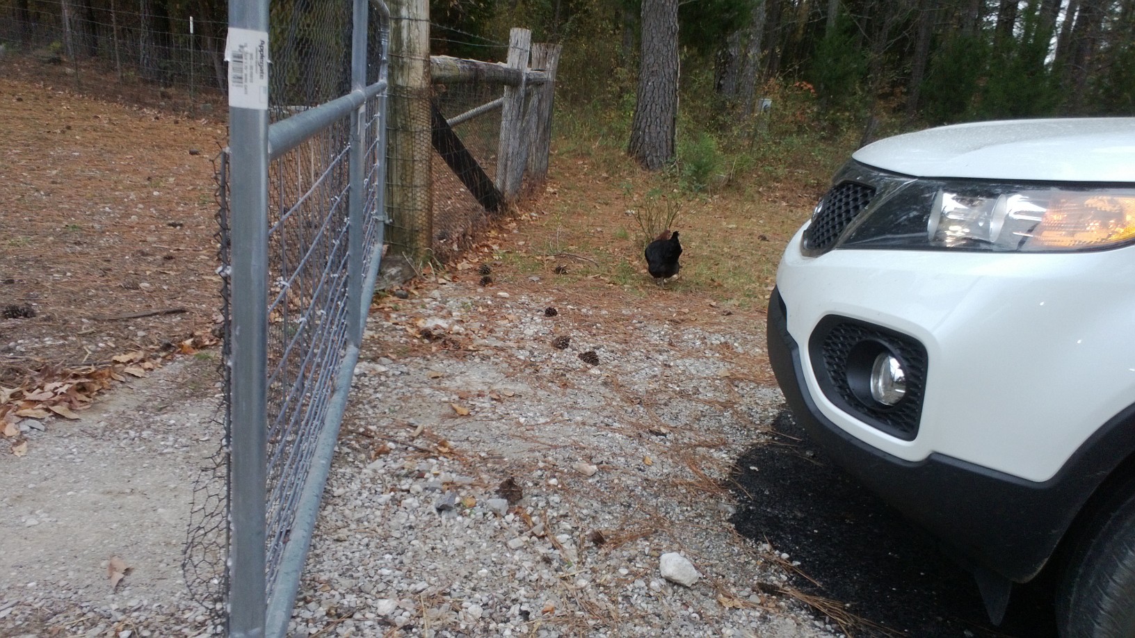 Billy finally said…you know…I’m going to do something different. l’m not going to depend on this opener…we will build them another enclosed area that hooks to the coop and they can come and go freely. It will be completely enclosed, top and sides. Then we can to let them free range in the big yard when we are around to make sure they are alright…otherwise they will free range in this smaller area. They will be safer, or at least as safe as you can make it.