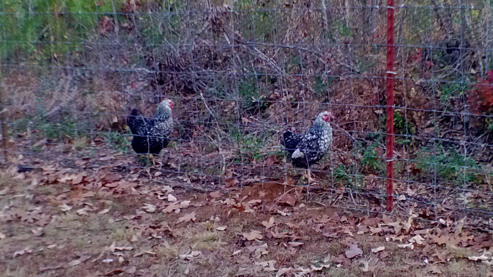 Sunday, Billy let the girls out after church. I didn’t know he had. About 9:00 that evening he asked me if I had put the girls up. No…I didn’t let them out today. I knew we weren’t going to be home long. He said…Uh…Oh….I did. I let them out…we better get home. We were in two different cars so I stopped at the coop and he went home to take the trash can to the road. I know…we have such exciting lives….