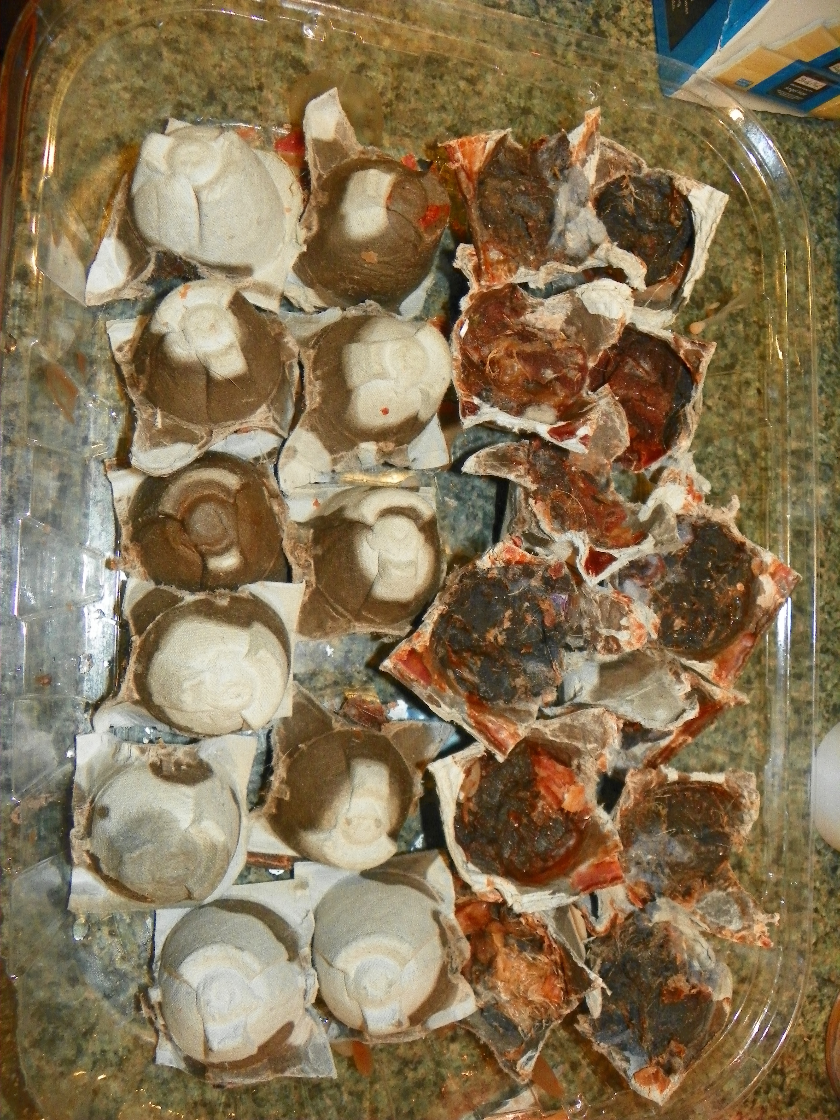 I cut the tops off….I stuffed the holes of the carton tightly with ….lint. ( I will probably use make more and use all the carton. They will just be shaped differently)