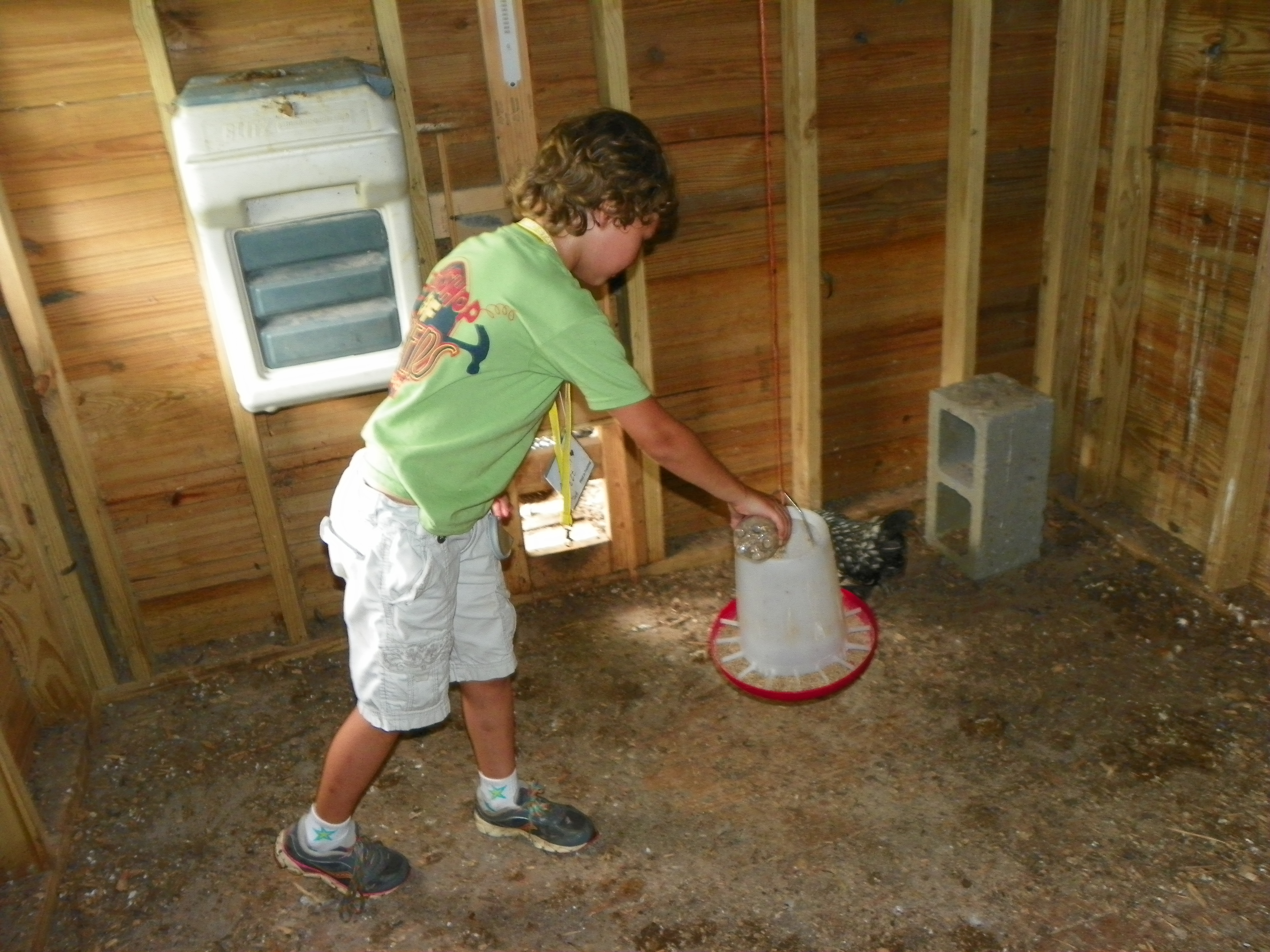 My egg production went down to almost nothing. Once one hen started sitting then the other girls would lay an egg beside her in the same box. I suppose they thought that if she was going to hatch babies there was no need for everybody to be sitting for three weeks. They would just let her do all the work. Besides they know that I won’t reach in and get the eggs if they are sitting. I like for the Mama’s to be Mama’s.