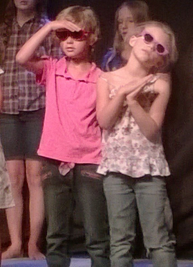 The last day of the camp they shared a program with the families. Layla and Vika were pretty goofy that night. For one they were just exhausted from a full week, but that day after camp they played in the sprinkler, rode their bikes and and were just plain worn out.