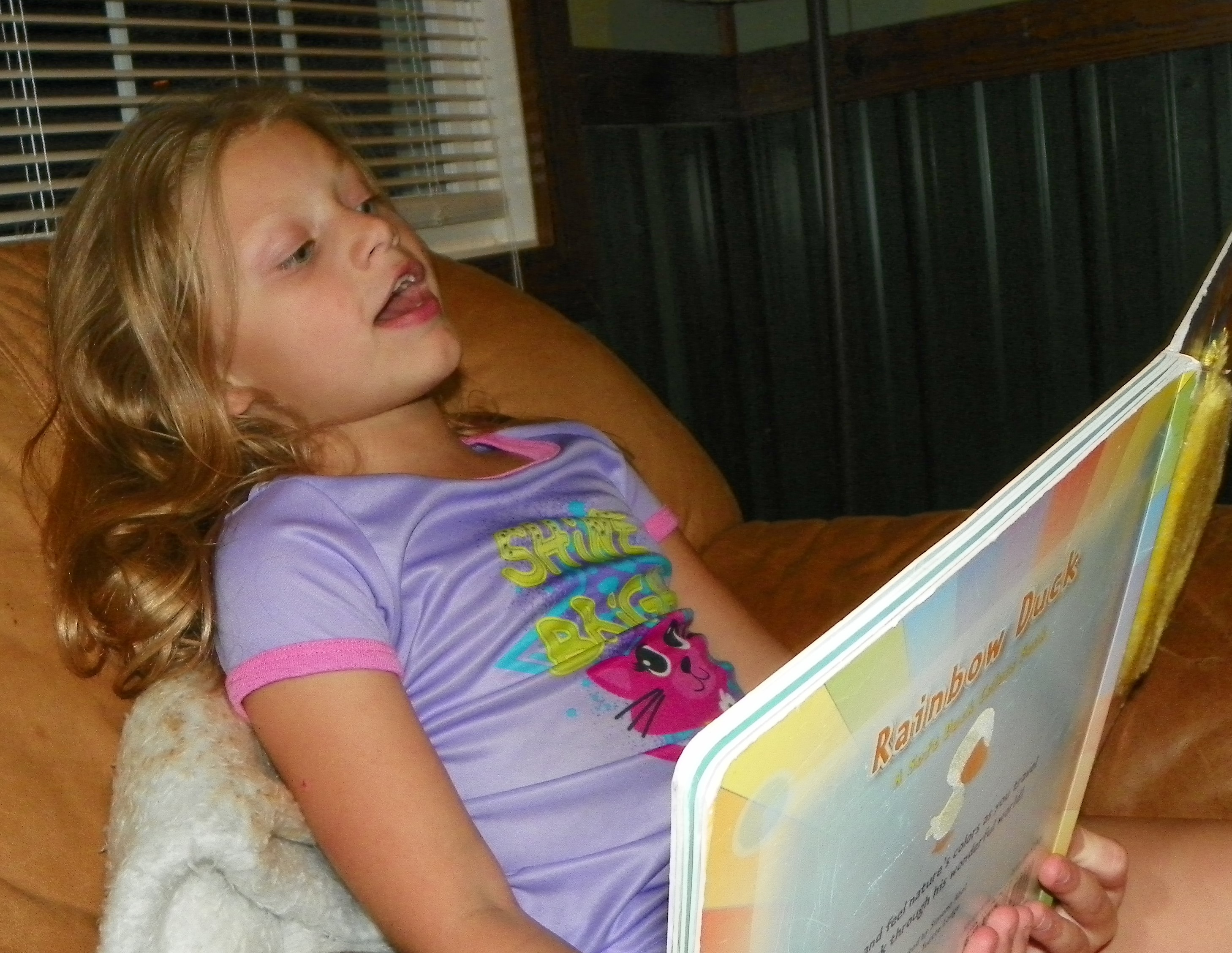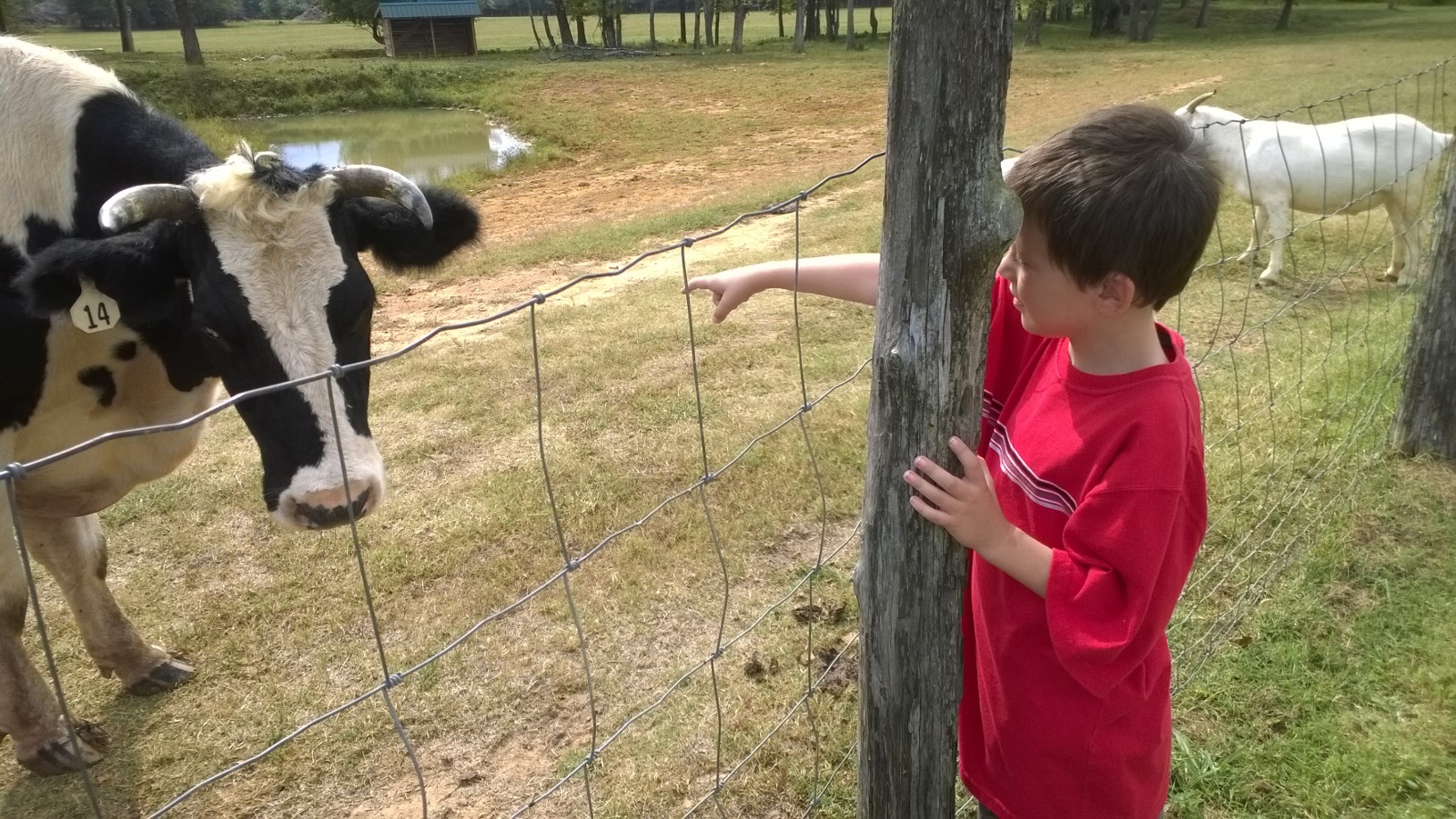 Or a goat. However, Riley has gotten some good practice with ours. I was most proud when I watched as she knelt down and gently rubbed this little ones head. They both seemed to enjoy it. I’m so glad they aren’t afraid of the animals.