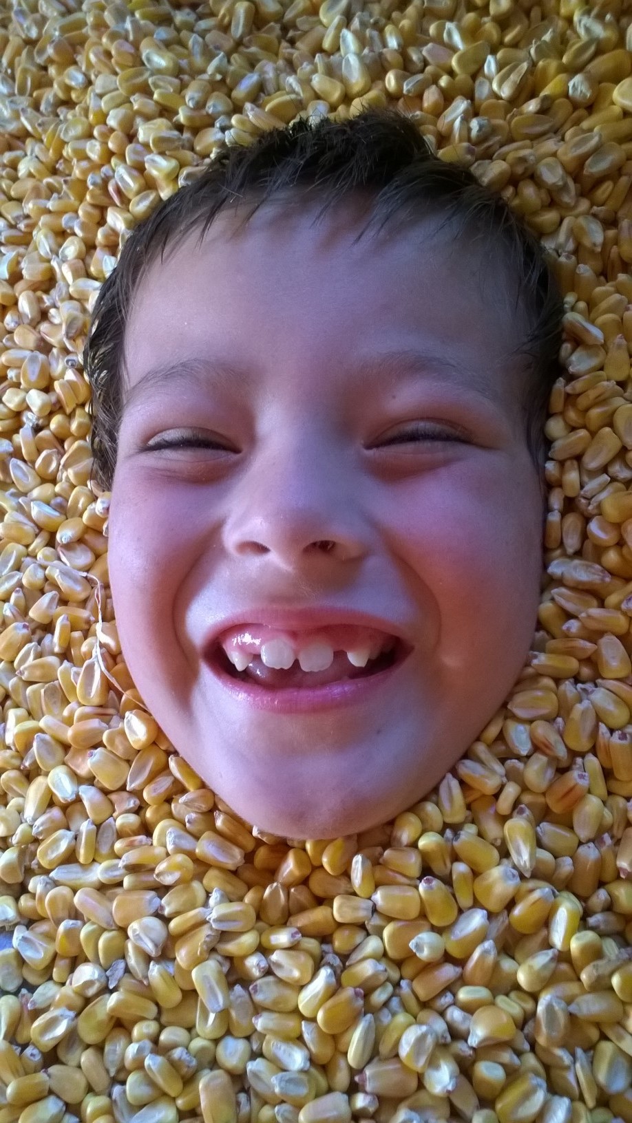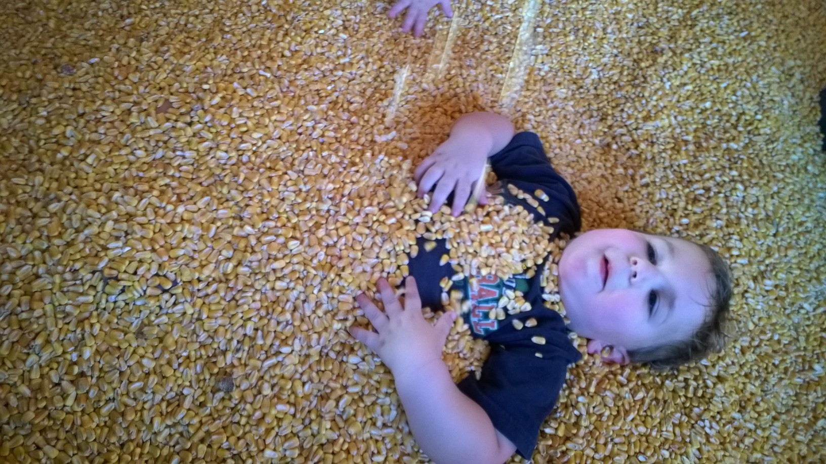 Little William thought he should get in on the action too. I got tickled when he laid down and started putting corn on himself.