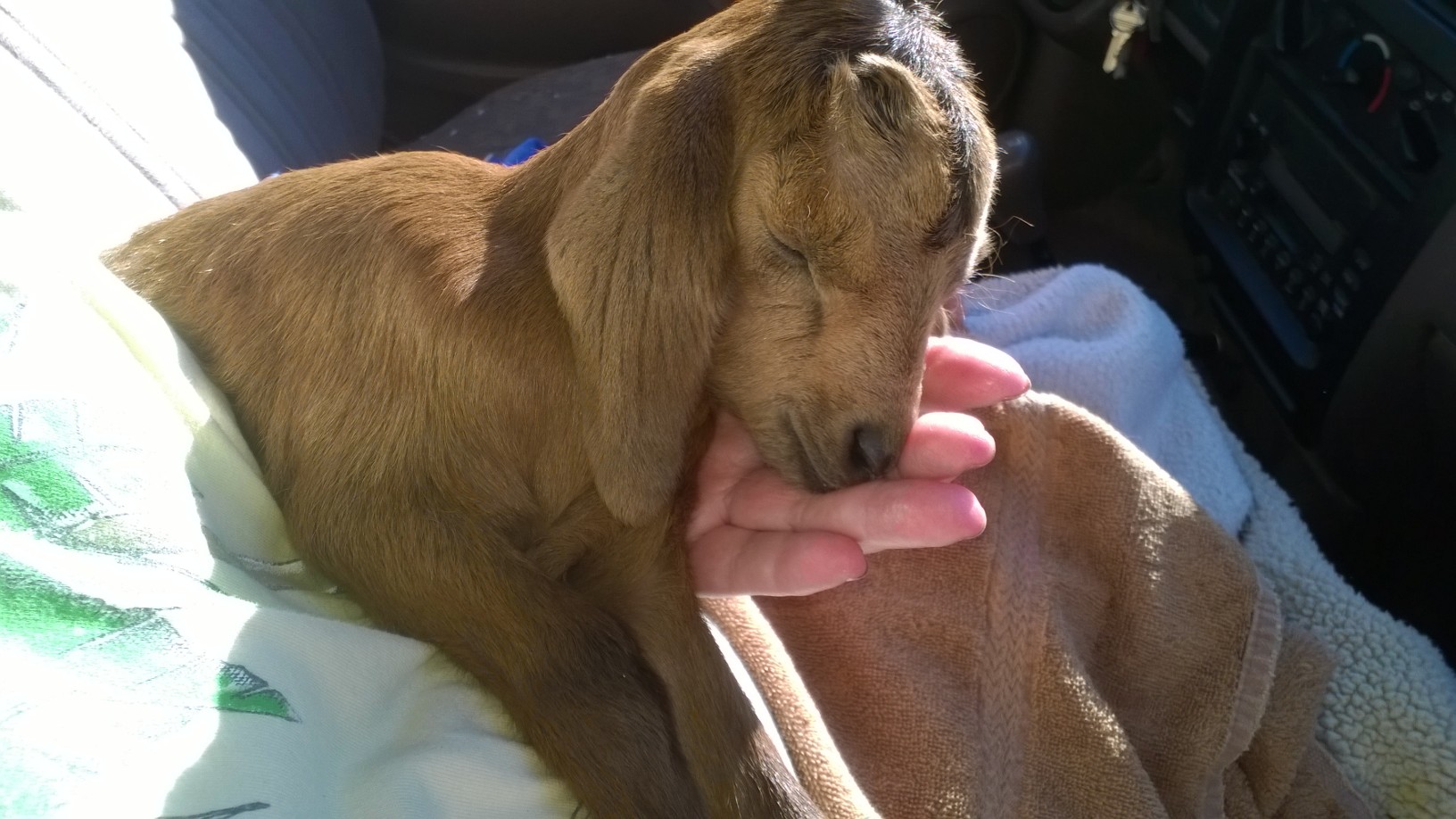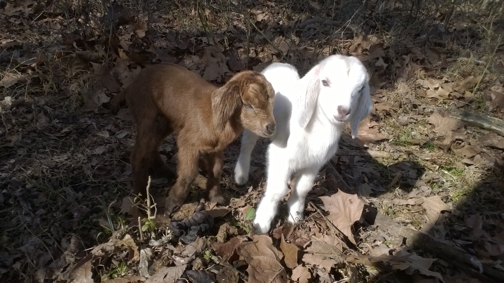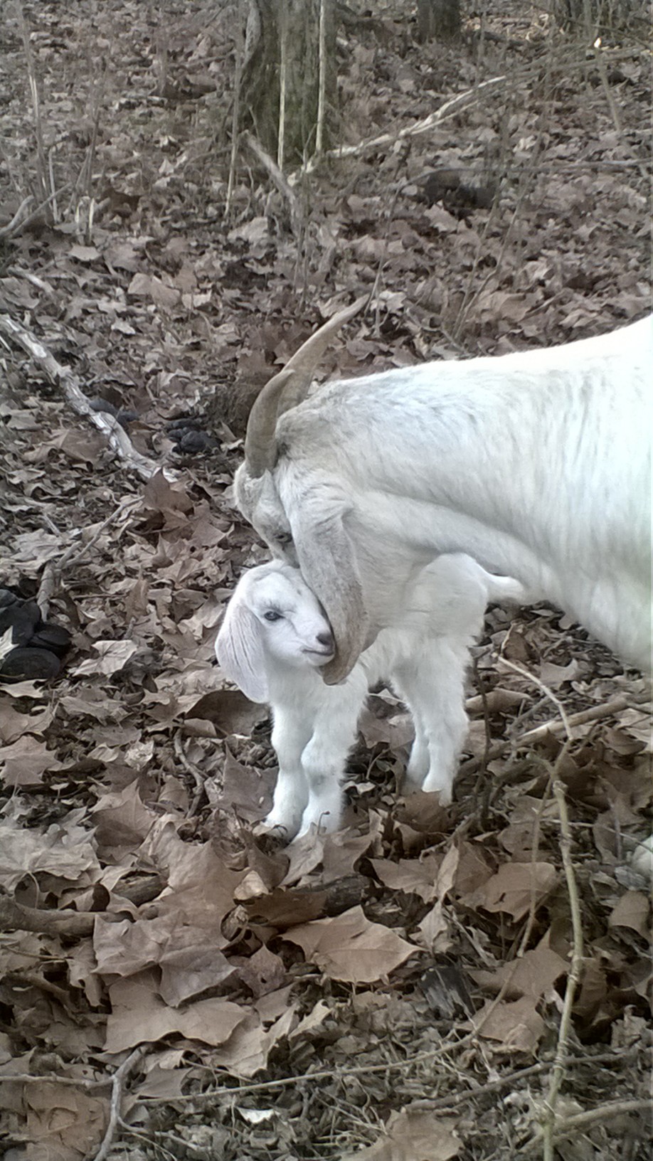 Mama was a good way off in the tree line and the white baby goat was a short distance from this one. She was standing and seemed perfectly fine.
