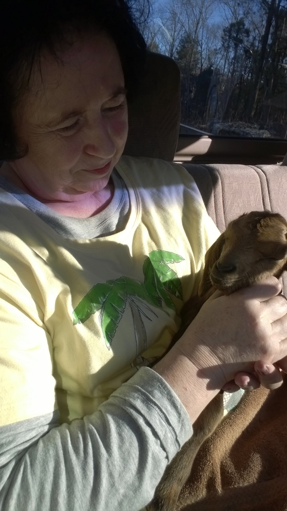 After the party we called to tell him we were on our way. I was almost afraid we would hear bad news. BUT instead he had taken great care of her and also had another helping hand. A sweet lady that volunteers her time helping with odd jobs at the Vision cuddled her in her lap. They were sitting in the warm sunshine when we arrived. I was amazed at her recovery, she was holding her little head up by herself. She was also obviously loving every moment of snuggle time.