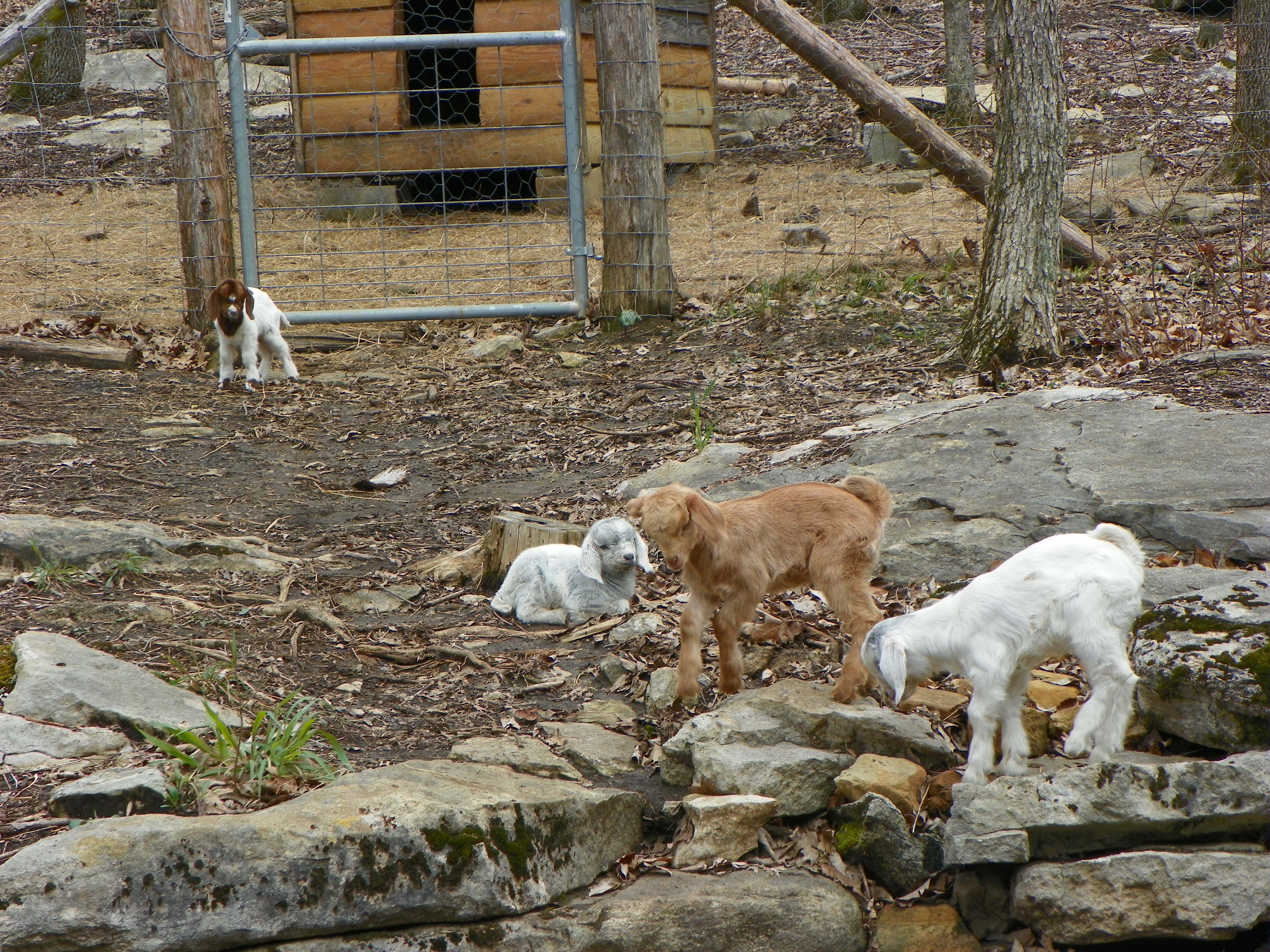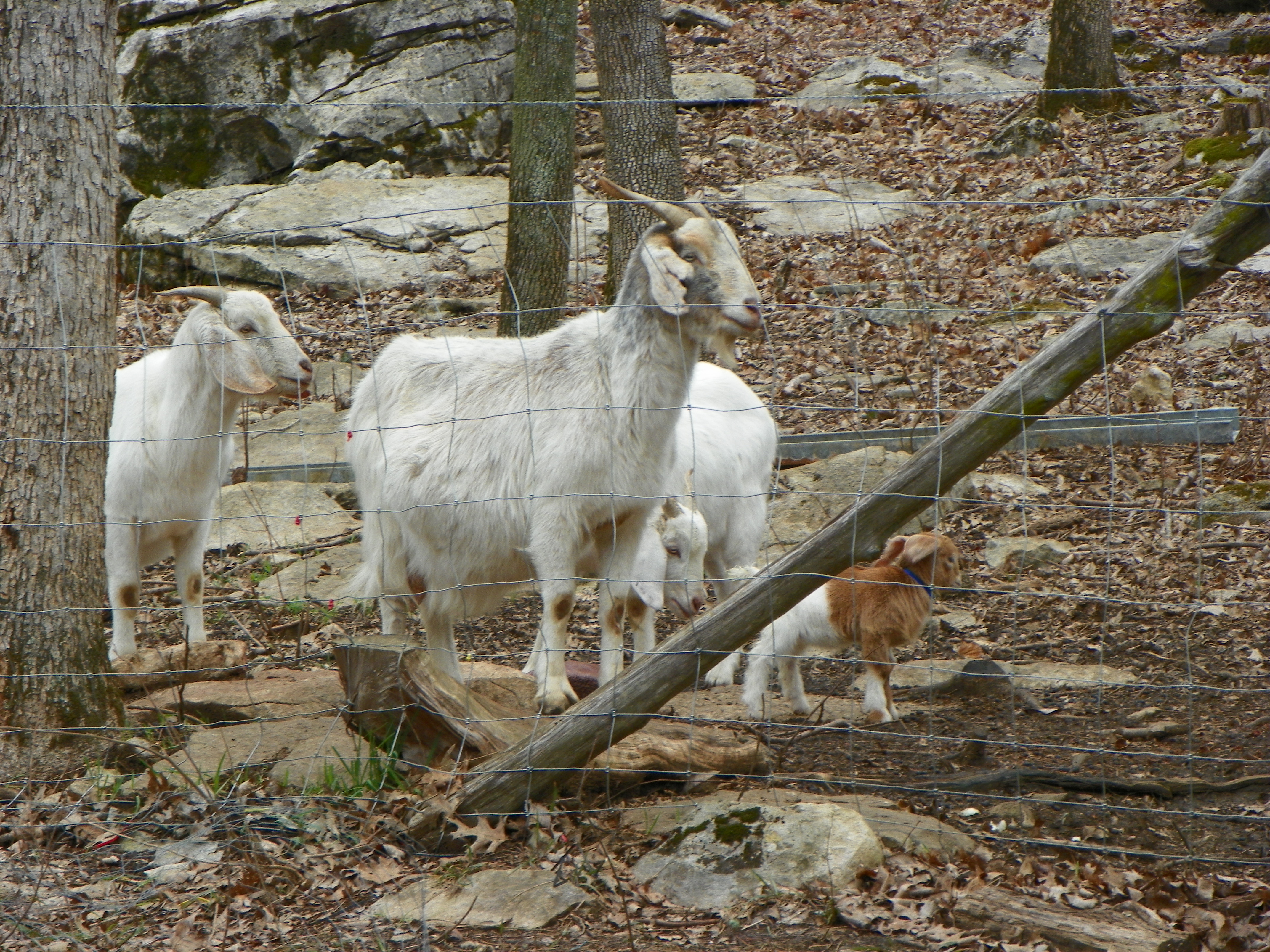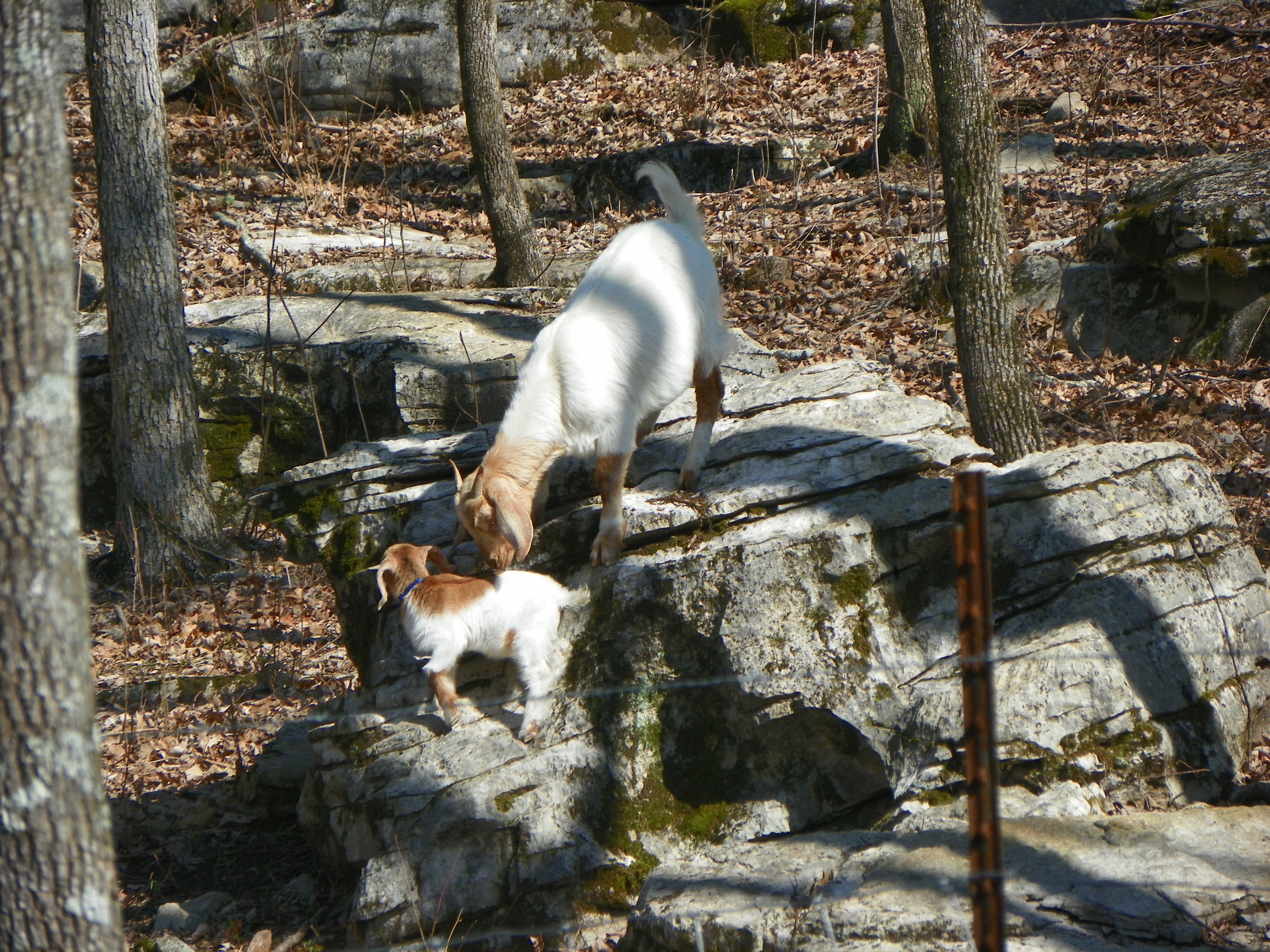 I finally spotted them on the other side of the fence in the wooded area….in two different trees. Billy was able to reach Maggie Mae, although she protested greatly, he placed her in the coop. Mara was beyond his reach.