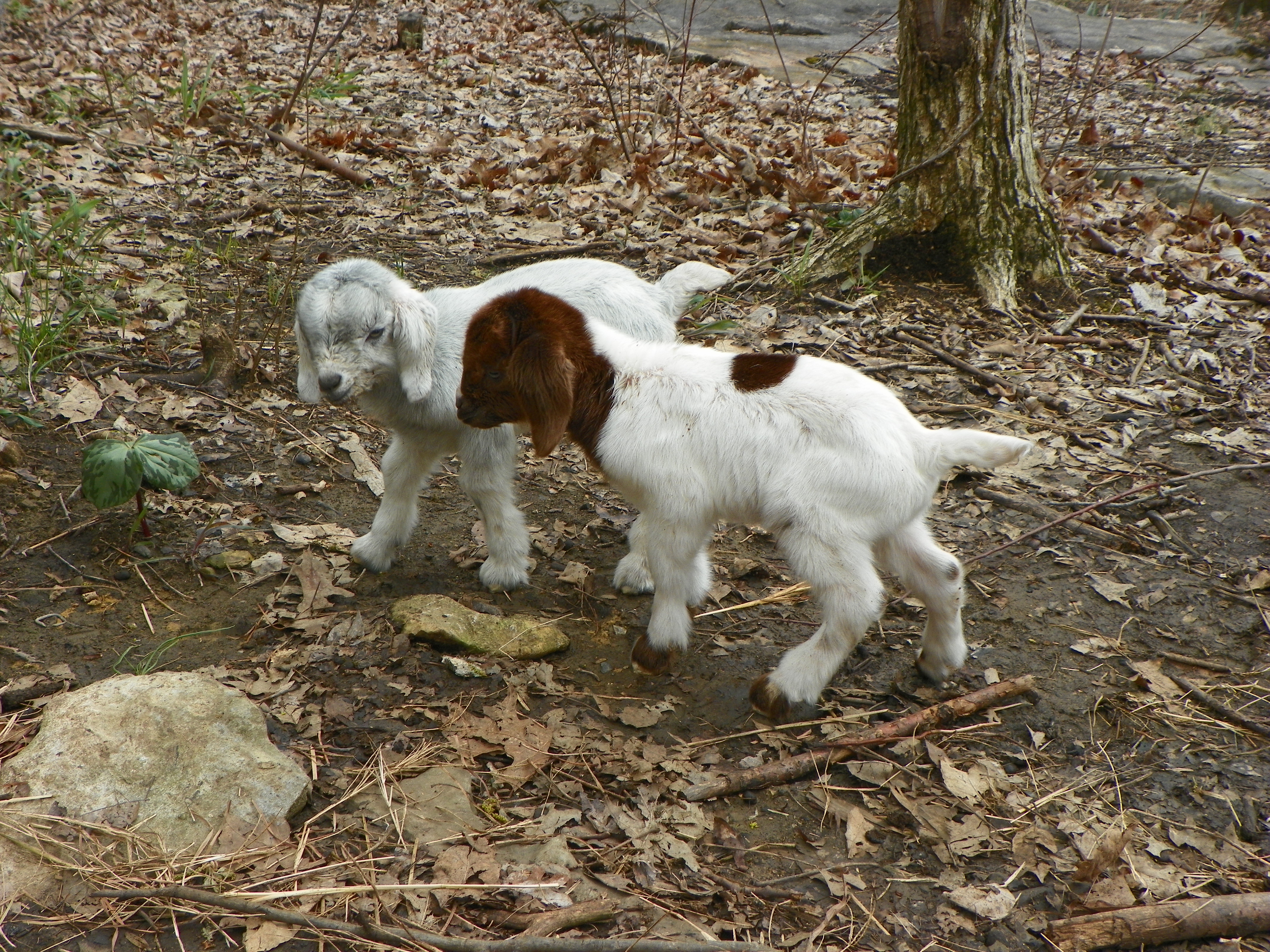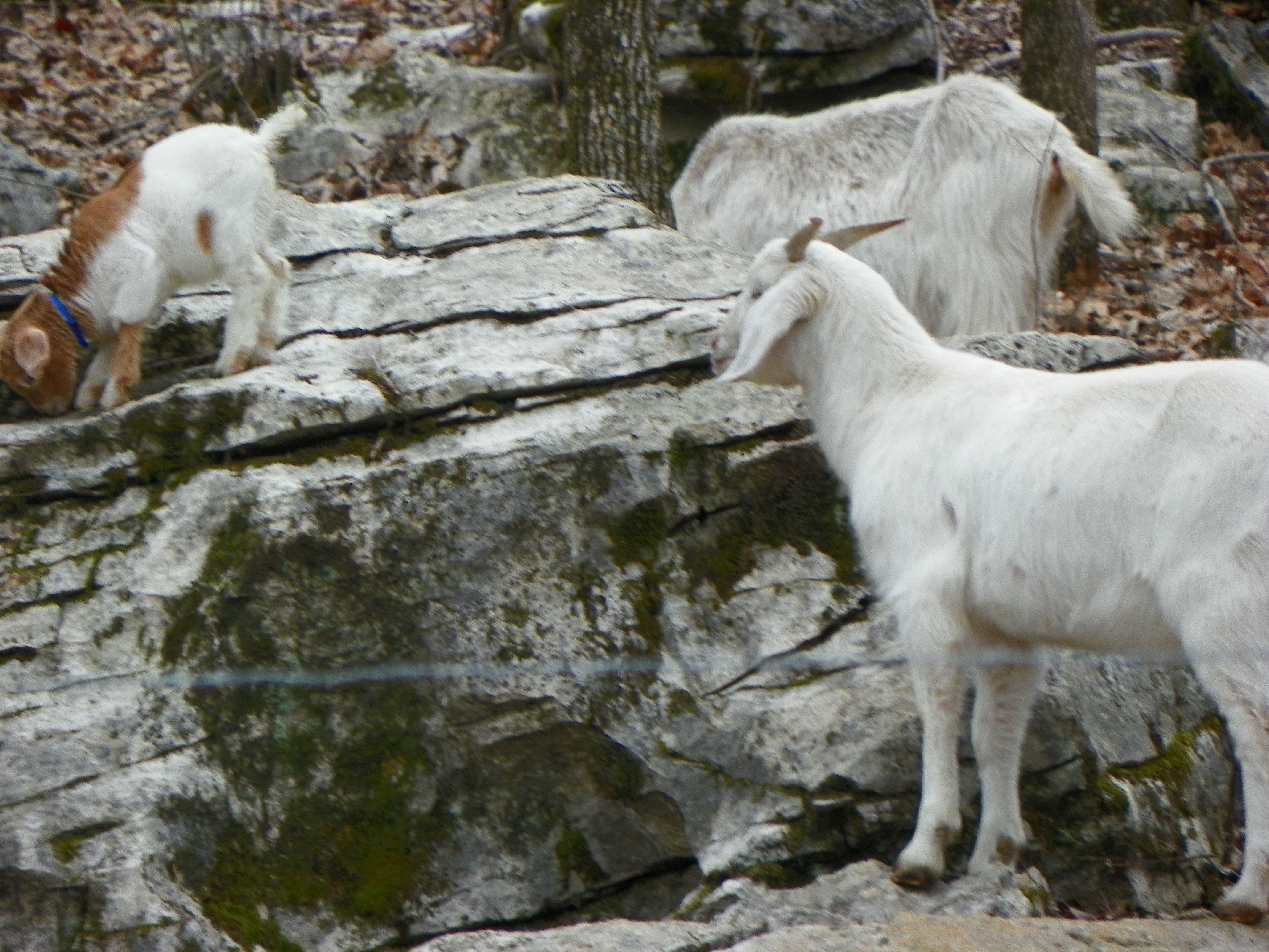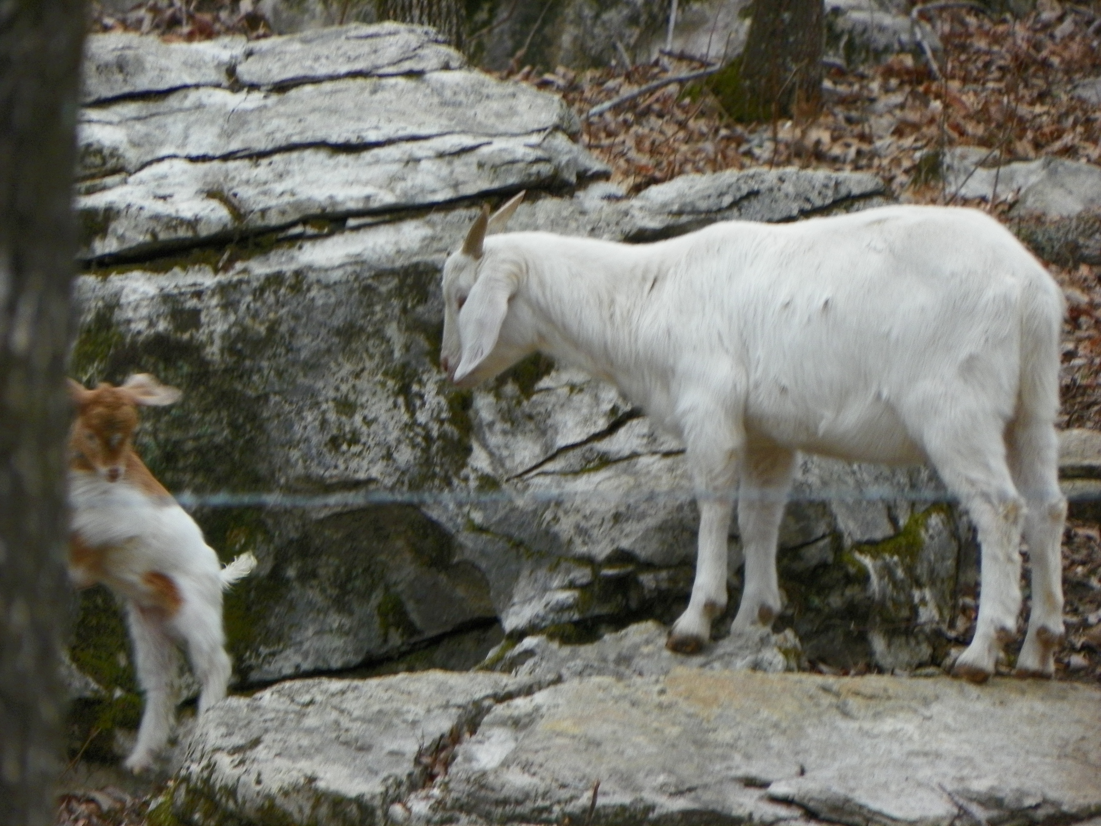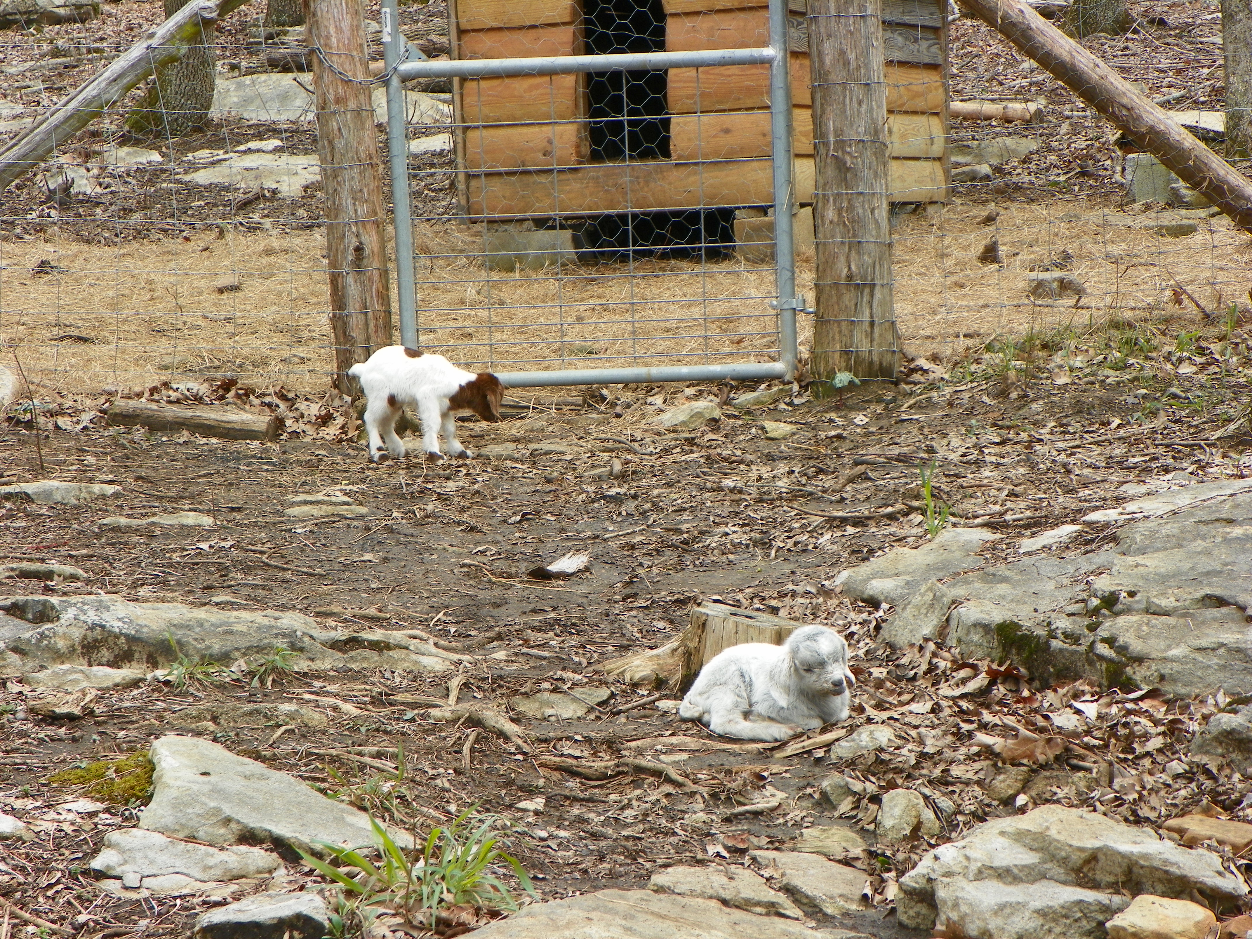 I finally spotted them on the other side of the fence in the wooded area….in two different trees. Billy was able to reach Maggie Mae, although she protested greatly, he placed her in the coop. Mara was beyond his reach.